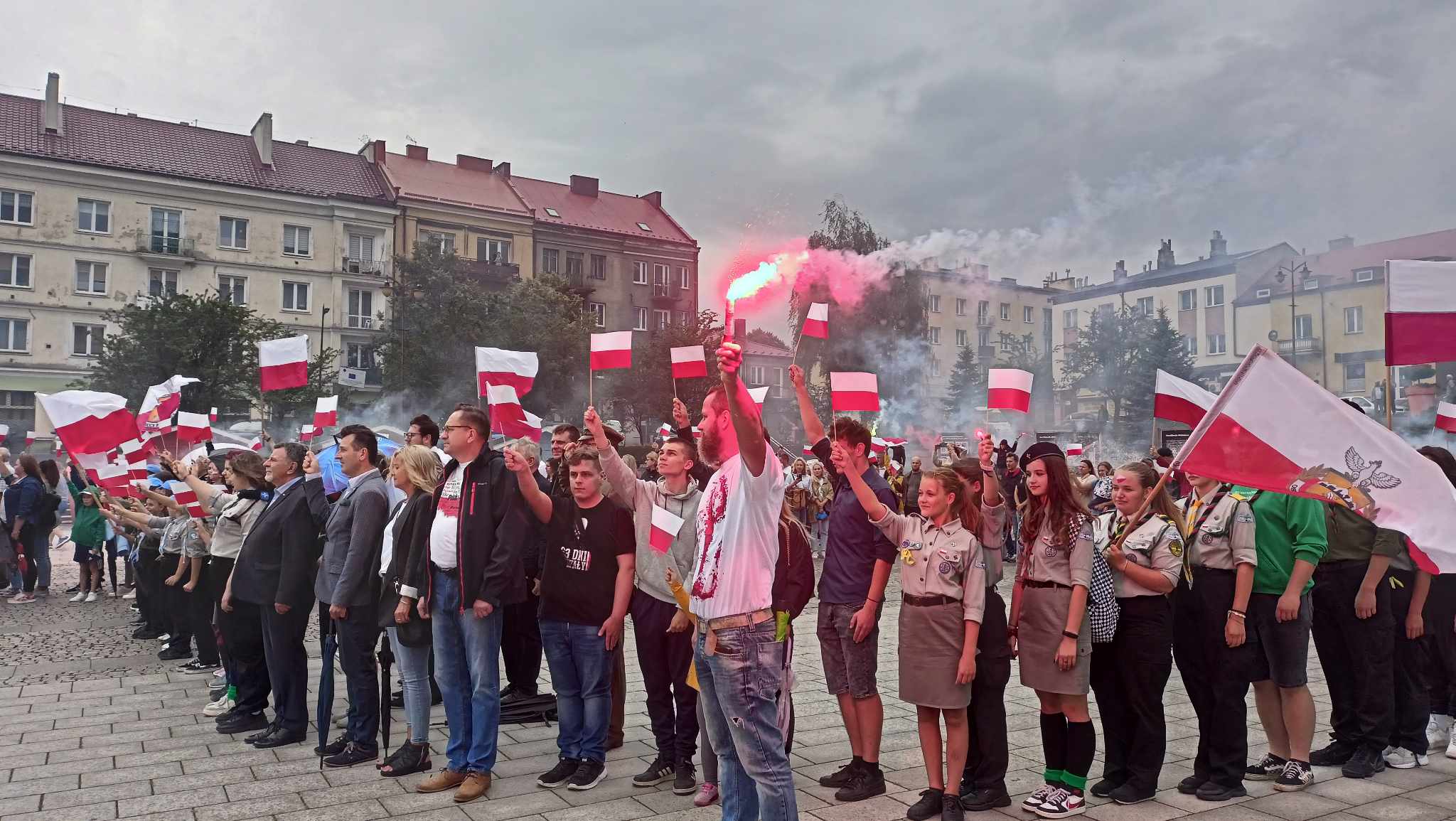 Organizatorzy, czyli Stowarzyszenie 'Ostrowieccy Patrioci’ zajęli się oprawą wydarzenia, na które przybyło ponad 100 osób. Gdy o godzinie 17 zawyły syreny w godzinę 'W’, ludzie ubrani w biało-czerwone barwy podnieśli w górę flagi i odpalili race. Żołnierze z 10 Świętokrzyskiej Brygady Obrony Terytorialnej i harcerze zadbali o uroczysty charakter obchodów, którego nie zepsuł nawet padający deszcz.